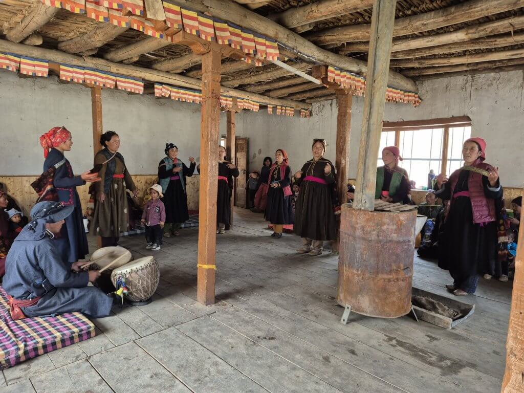 In den Gesprächen haben wir auch das Selbststudium thematisiert. Während der Sommermonate besuchen die Rinpoche die Dörfer und halten Unterweisungen ab – kurze Lehrreden oder Anleitungen zu buddhistischen Themen. Die Frauen sind im Sommer auf den Feldern sehr beschäftigt. An den Tagen der Unterweisungen arbeiten sie jedoch nicht, sodass sich die Gelegenheit bietet, vor den Treffen zusammenzukommen und das Gelernte gemeinsam vom letzten Winter zu wiederholen.