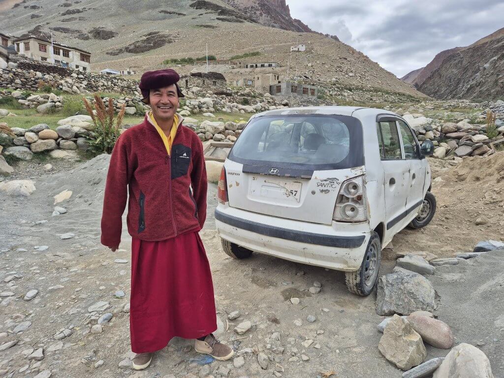 Der Projektleiter Nawang Palden konnte mich dieses Jahr aufgrund der Krankenpflege eines Familienangehörigen während meiner Besuche im Zanskar nicht begleiten. In der Zeit meines Aufenthalts im Dorf Pipcha traf ich Lama Sampel, einen Mönch aus dem benachbarten Kloster Barden, der im Winter die Frauen unterrichtet. Ich konnte ihn dafür gewinnen, mich als Fahrer zu begleiten. Gemeinsam besuchten wir die Dörfer im Lungnak-Tal, in denen im vergangenen Winter bereits Unterricht stattgefunden hatte, sowie ein neues Dorf, das beim Projektleiter Nawang Palden eine Anfrage für die Aufnahme in das Projekt gestellt hatte. Für die übrigen Dörfer rund um Padum organisierte Nawang vor Ort einen Fahrer, sodass auch diese besucht werden konnten.