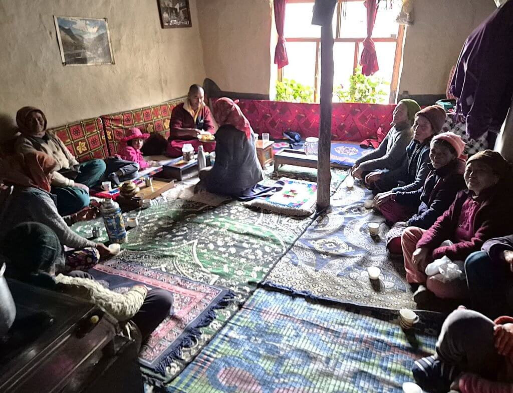 In den Gesprächen haben wir auch das Selbststudium thematisiert. Während der Sommermonate besuchen die Rinpoche die Dörfer und halten Unterweisungen ab – kurze Lehrreden oder Anleitungen zu buddhistischen Themen. Die Frauen sind im Sommer auf den Feldern sehr beschäftigt. An den Tagen der Unterweisungen arbeiten sie jedoch nicht, sodass sich die Gelegenheit bietet, vor den Treffen zusammenzukommen, um das im letzten Winter Gelernte zu wiederholen. Es muss daran gearbeitet werden, dass das Lesen auch im Sommer zur Selbstverständlichkeit wird und die Lesekompetenzen nicht verloren gehen.