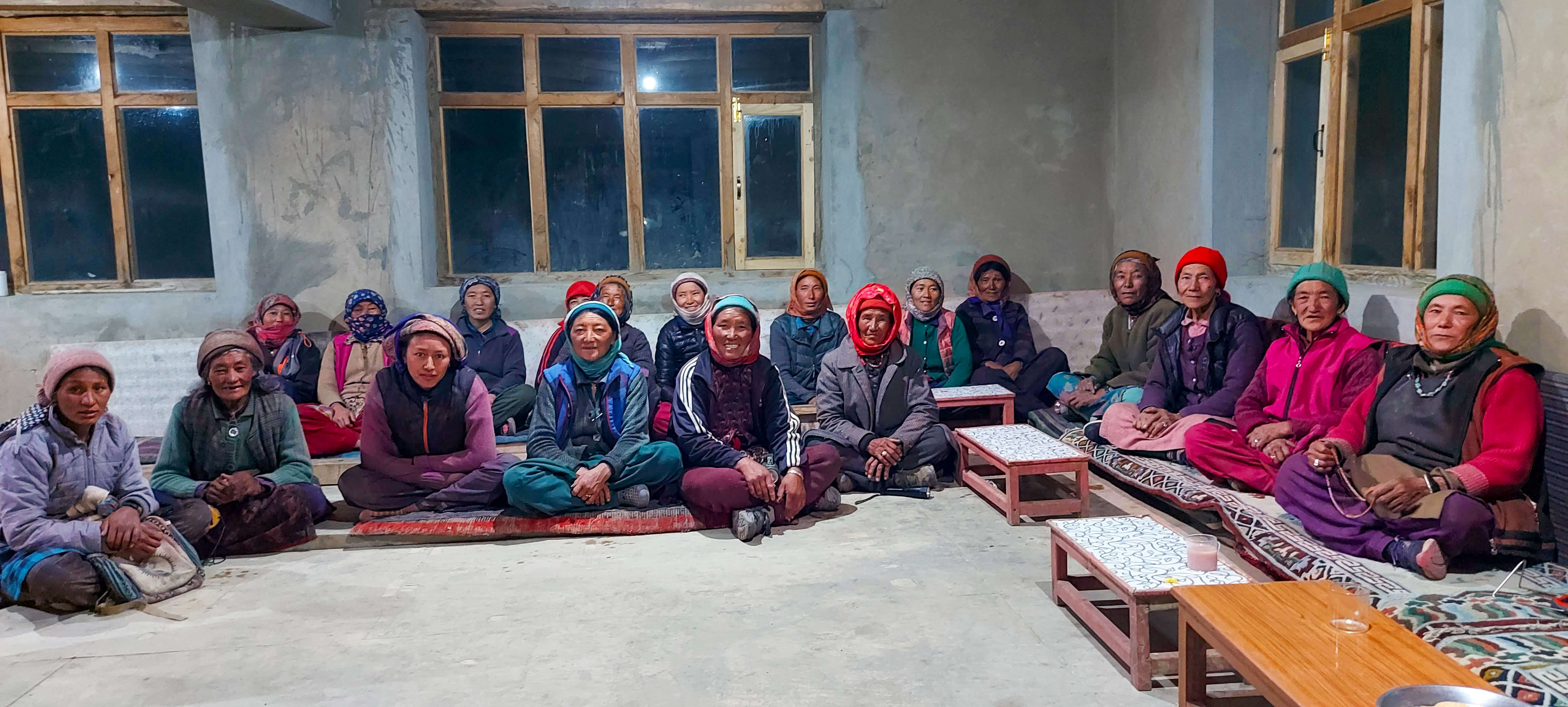 Sheela is located on the valley floor at the beginning of the Lungnak Valley. The village is lush and green, standing in stark contrast to the barren landscape of Zanskar. Twenty-seven families live in the village, each with an average of three children. Fifteen women are participating in the winter lessons.